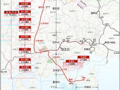 남부내륙철도(김천-거제) 건설사업은 경북 김천에서 경남 거제까지 총 연장 174.6㎞ 길이의 대규모 고속철도 건설사업이다. 총 사업비 7조974억원이 투입된다.