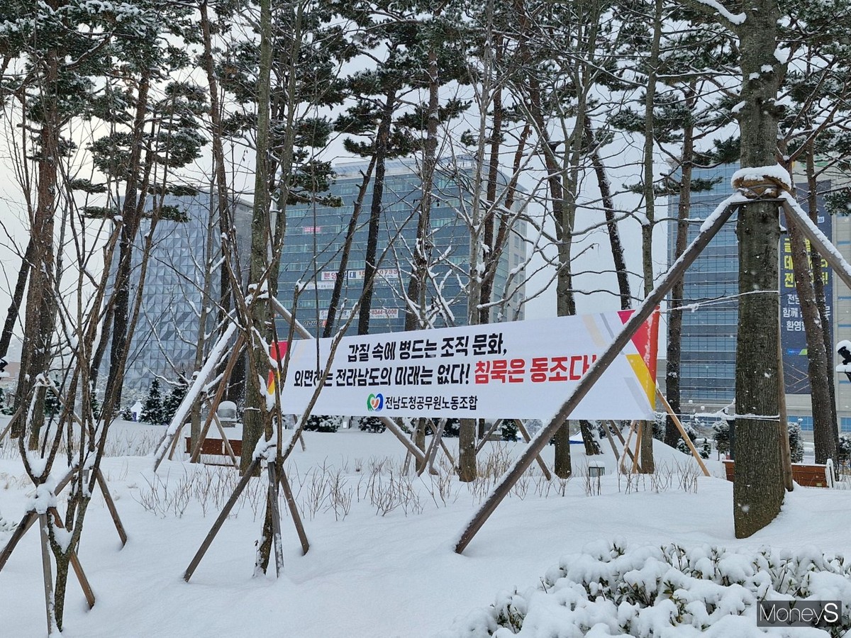 2일 머니S 취재 및 지역 정가에 따르면, 전남도청 곳곳에는 도의 인사행정을 질타하는 노조의 현수막이 내걸렸으며 노조 게시판에는 조합원들의 분노 섞인 글이 연일 게시되고 있다.