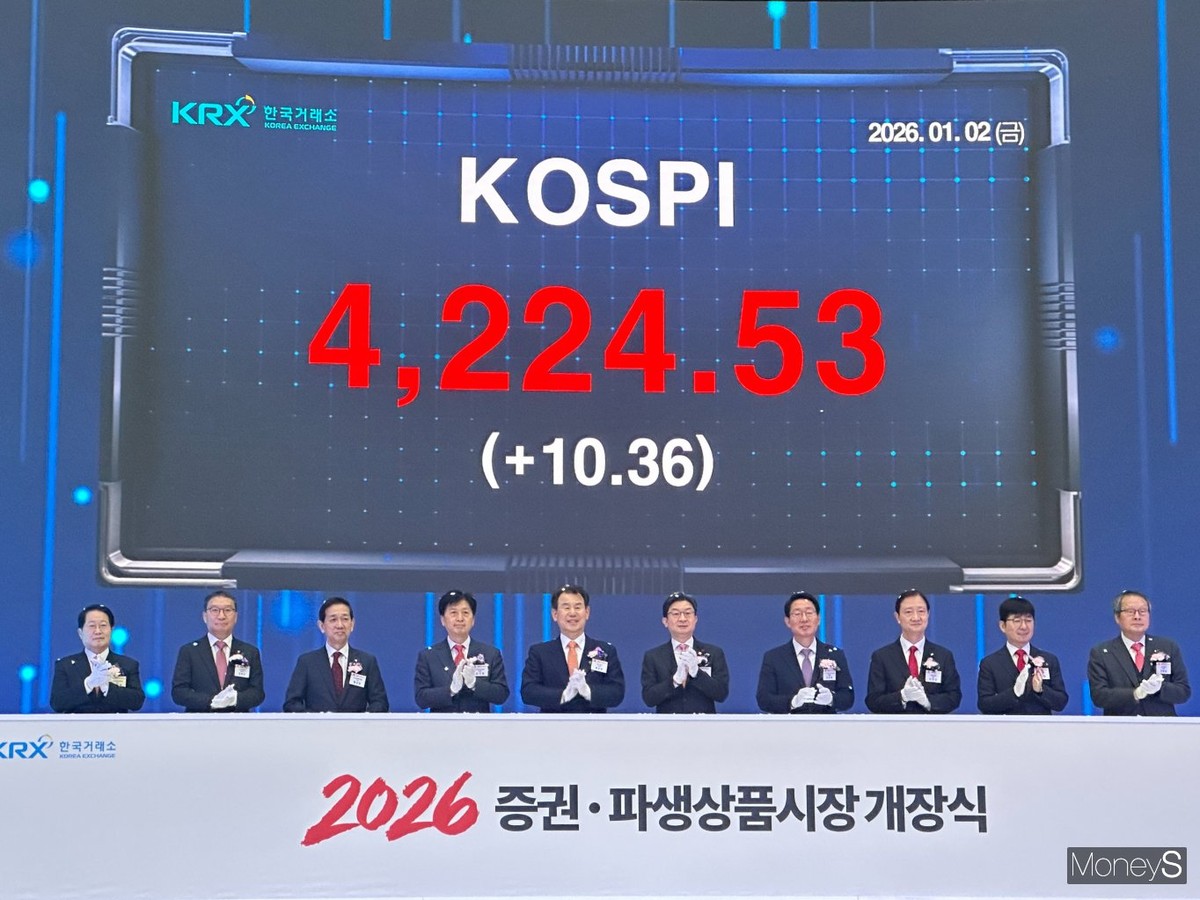 이날 개장 행사는 정은보 한국거래소 이사장과 이억원 금융위원장, 이찬진 금융감독원장 등 내외 귀빈이 참석했다. 한국거래소에 따르면 새해 첫날부터 코스피는 오전 11시5분 기준 사상 최고가인 4259.83을 기록했다.