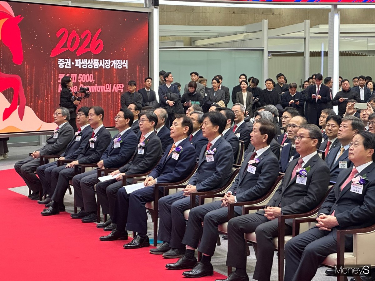 2일 한국거래소가 서울사옥 마켓스퀘어 2층 종합홍보관에서 2026년 증권·파생상품 개장식을 개최했다. 이날 개장식에는 정부와 국회, 한국거래소 및 증권업계 관계자들이 모여 코스피 5000시대를 위한 각오를 다졌다.