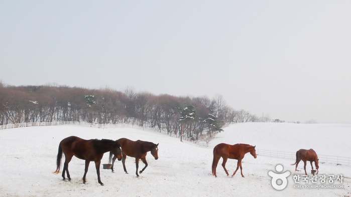 경기도에 숨겨진 넓이 36만㎡ 규모의 대형 목장으로, 과거 종마목장에서 현재는 경마교육원으로 역할이 바뀌어 기수와 마필 전문가를 양성하고 있다. 입구까지 이어지는 은사시나무길은 겨울이면 눈으로 뒤덮여 운치를 더한다. 아무도 밟지 않은 광활한 눈밭과 질주하는 말들의 모습은 새해의 활기를 전하기에 충분하다.
