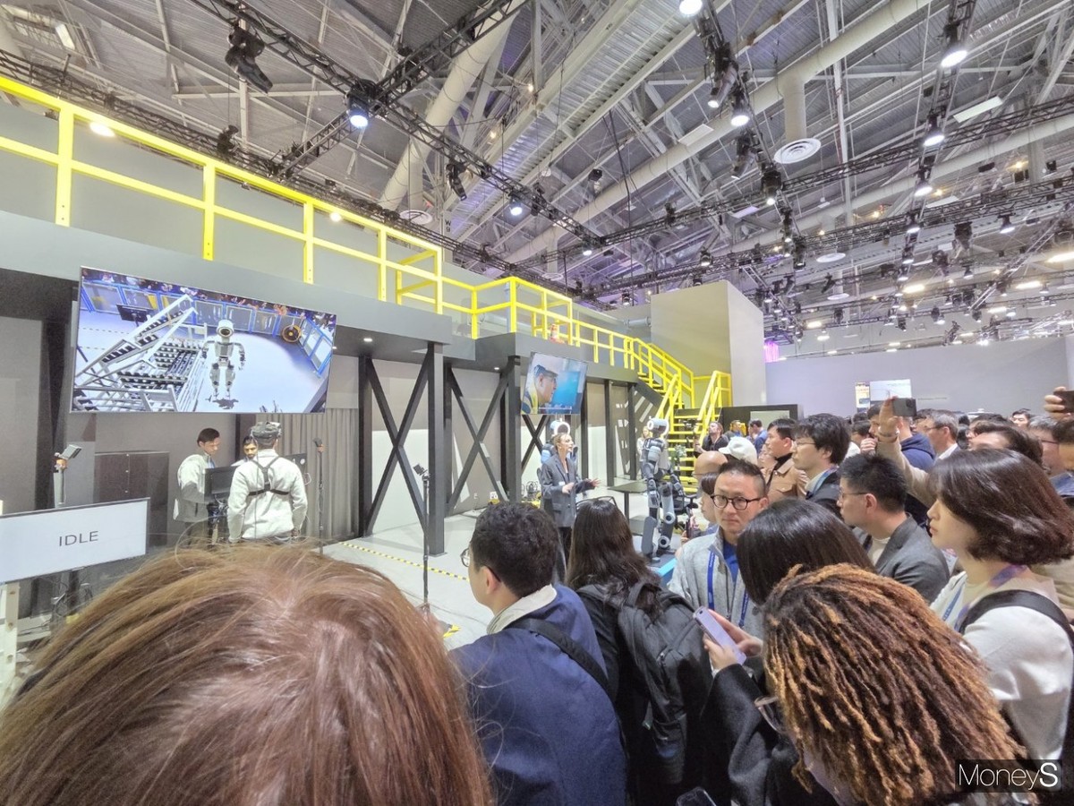 현대차그룹은 이번 전시에서 AI 로보틱스 연구 환경을 그대로 옮겨온 '테크랩'을 통해 전동식 아틀라스의 연구형과 개발형 모델을 전면에 내세웠다. 360도 회전이 가능한 관절을 적용한 연구형 모델은 기존 유압식 모델보다 훨씬 정교하고 유연한 보행 성능을 과시하며 참관객들의 시선을 사로잡았다.