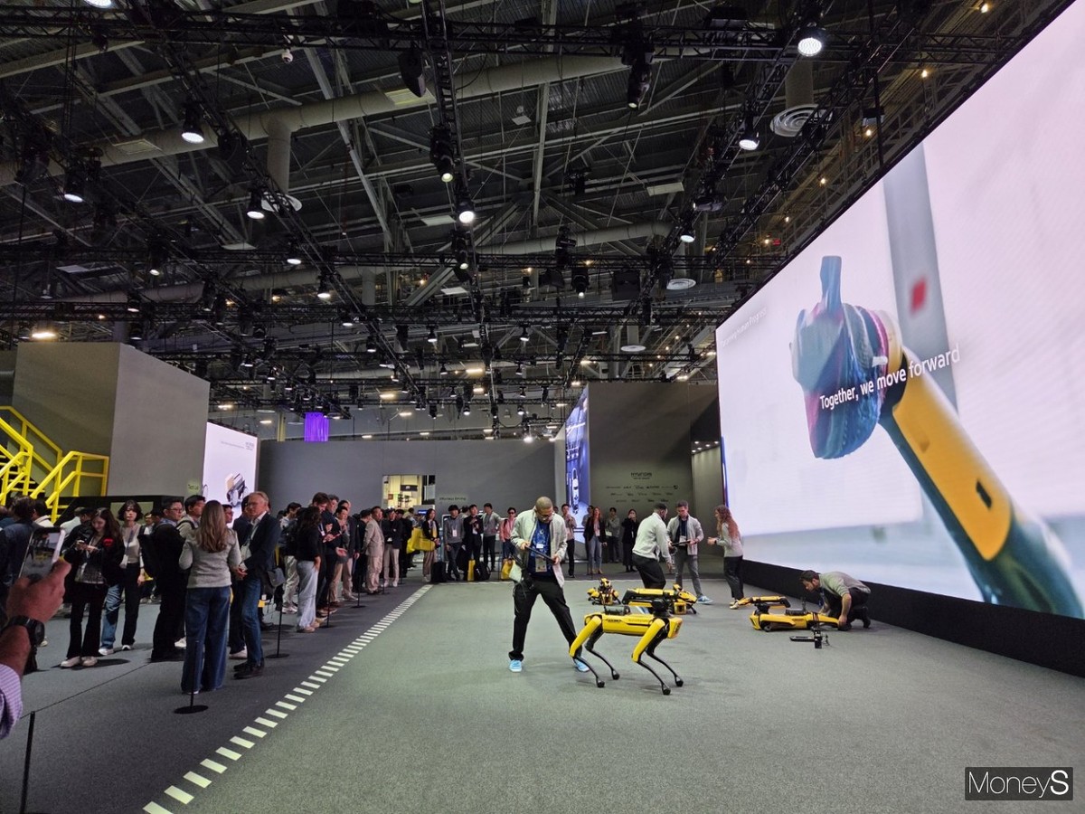 로봇 하드웨어를 뒷받침하는 소프트웨어 경쟁력도 눈에 띄었다. 아틀라스 상단 무대에서는 4족 보행 로봇 '스팟'이 전용 소프트웨어 플랫폼 '오르빗 AI'를 기반으로 소화기 점검 임무를 수행했다. 계단을 성큼성큼 오르며 카메라로 이상 징후를 탐지하는 모습은 자율 주행 로봇의 진화를 보여줬다. 오르빗 AI는 실시간 모니터링부터 데이터 분석까지 가능한 통합 관리 시스템으로, 로보틱스의 운영 효율을 극대화하는 핵심 역할을 한다.