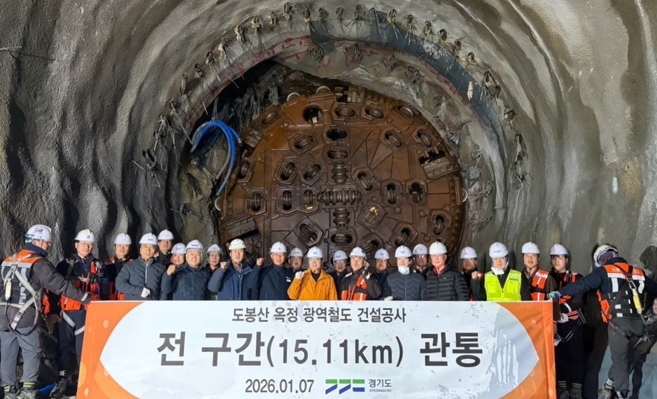 경기도는 2020년 12월 착공 이후 약 5년 만에 도봉산~옥정 광역철도 공사 구간의 전체 터널이 연결되어 총 15.11km가 모두 관통됐다고 8일 밝혔다. 관통 공사는 철도 건설의 가장 핵심적인 공정으로, 이제 전기·신호 등 시스템 분야와 정거장 내·외부 마감 공정만을 남겨두게 됐다.