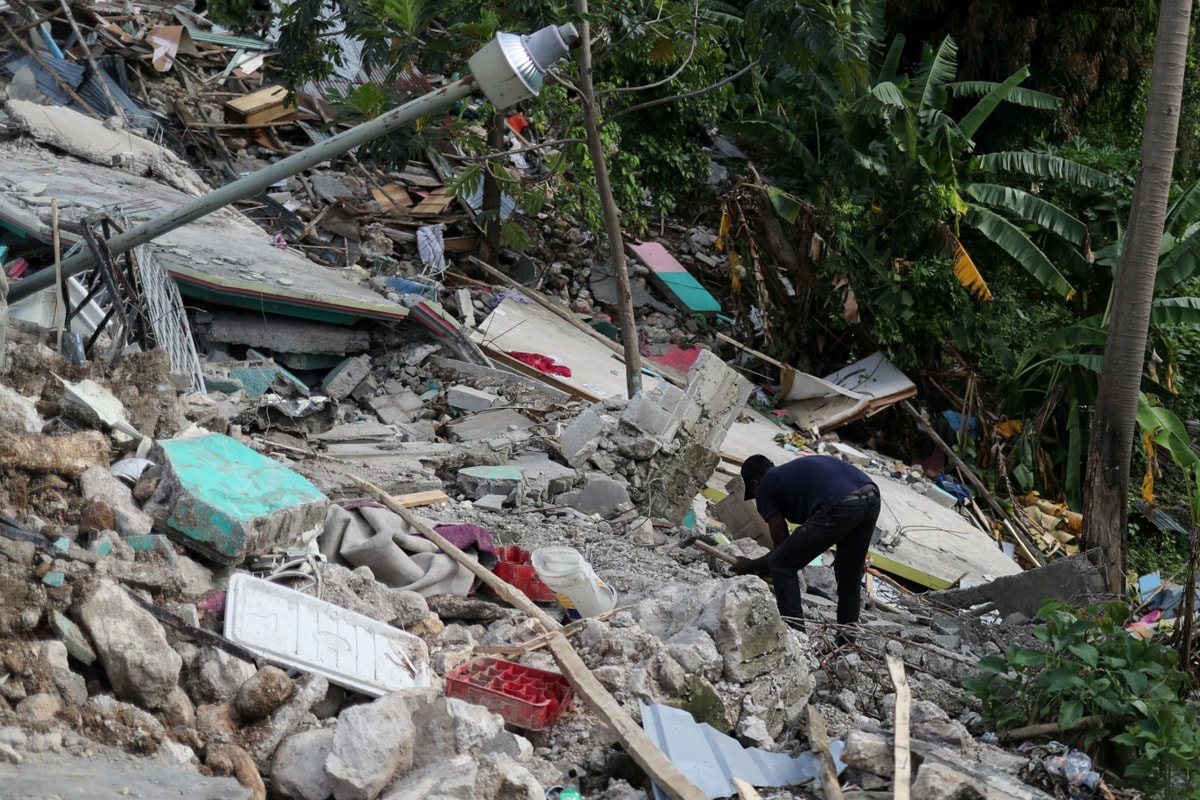 아이티는 지진 발생 후 국가 경제가 무너졌다. 사진은 2021년 8월20일 아이티 지진 발생으로 무너진 가옥 잔해 속을 수색 중인 모습. /사진=로이터