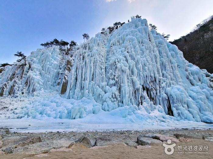 인공적인 도심의 풍경을 벗어나 깊은 산세와 어우러진 자연 그대로의 빙벽을 배경으로 남기는 사진은 겨울 여행의 백미로 꼽힌다. 기암괴석 사이로 단단하게 얼어붙은 푸른 빛의 빙벽은 모진 추위마저 견고한 예술로 승화시킨 자연의 경이로움을 고스란히 드러낸다.