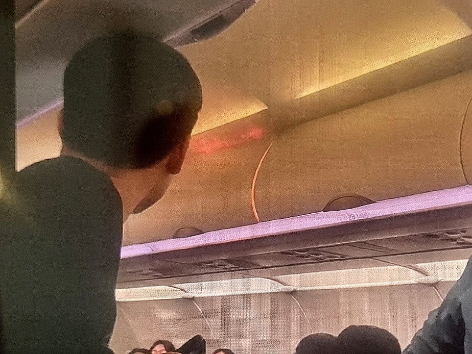 중국 하이난성 싼야를 출발해 청주로 향하던 티웨이항공 여객기에서 승객의 보조배터리에서 연기가 발생했다. 사진은 지난 1월 화재가 발생한 홍콩행 에어부산 항공기 BX391편 기내 좌석 위 선반에서 붉은 화염이 포착된 모습. /사진=뉴스1(독자 제공)