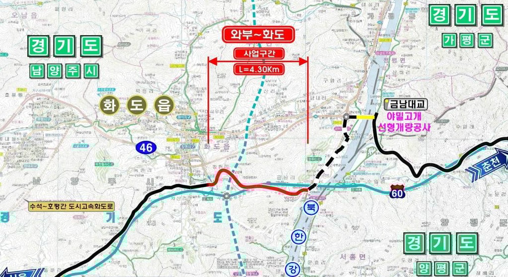총 927억원의 사업비를 투입, 굴곡이 심하고 폭이 좁아 사고 위험이 높았던 기존 도로를 직선 형태의 2차로로 개선해 숙원을 해결했다. 이번 개통으로 와부에서 화도까지 이동시간이 기존 13분에서 4분으로 9분 정도 줄어들어 지역 주민의 삶의 질이 개선됐다.