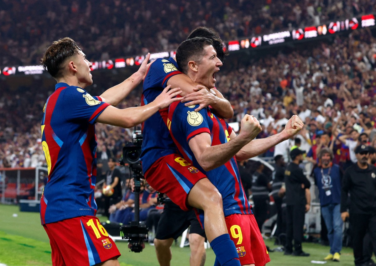 바르셀로나는 12일(한국시각) 사우디아라비아 제다 킹 압둘라 스포츠시티에서 열린 2025-26시즌 스페인 슈퍼컵(수페르코파 데 에스파냐) 결승에서 레알을 3-2로 꺾고 우승을 차지했다. 통산 16번째이자 2023-24시즌 이후 2년 만에 정상이다.