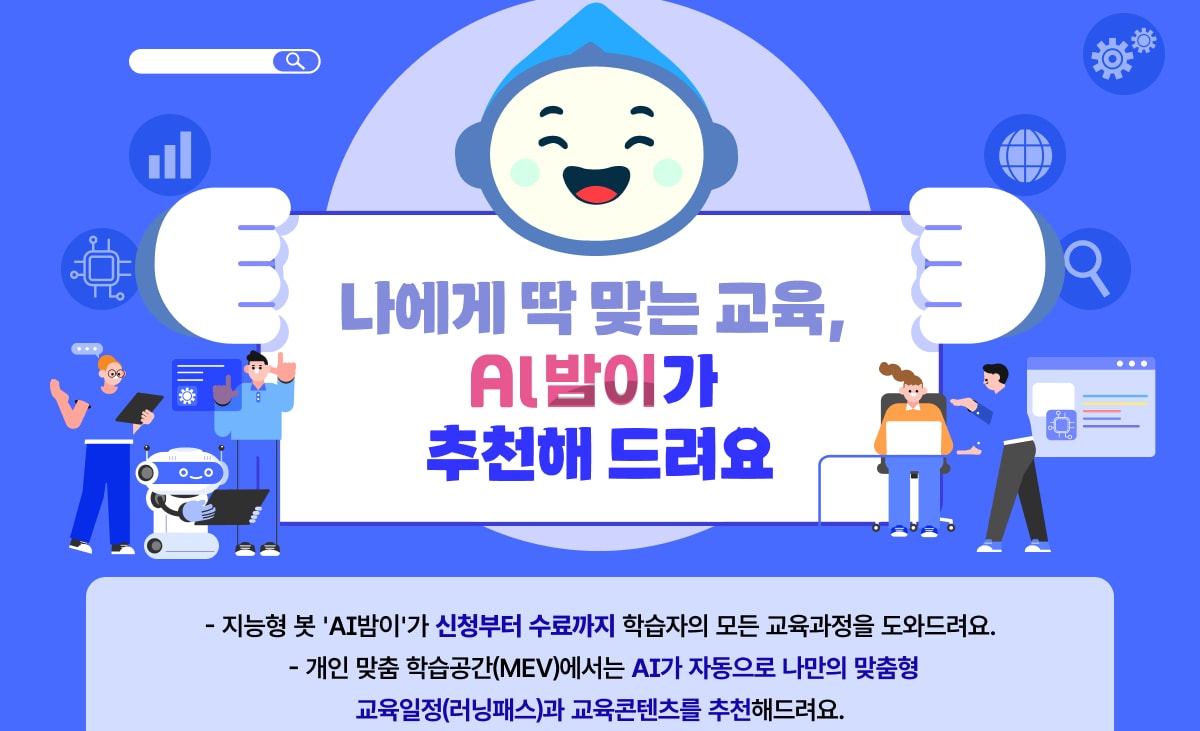 재난․안전 업무에 관심이 있는 7급 시설직 공직자의 경우 재난·안전 기본 개념 강의를 사이버교육으로 듣고 강의 추천을 요청하면 재난·안전 실무능력을 강화할 수 있는 집합교육을 추천받는다. 또한, 학습자는 지능형 봇 'AI밤이'를 통해 시간과 장소에 구애받지 않고 교육과정 안내와 교육 신청·이수, 과목 추천 등 교육 운영 전반에 관한 사항을 안내받게 된다.
