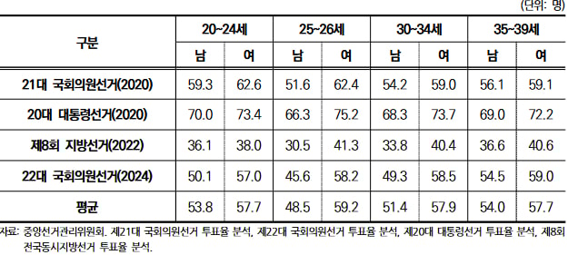 정치활동 참여 방식에서도 성별과 세대에 따른 특성이 관찰됐다. 청년세대의 투표 외 정치참여율은 남녀 모두 25% 수준이었으나, 여성은 거리 시위나 온·오프라인 청원, 청원 링크 공유 등 실질적인 행동주의 방식에 더 적극적인 것으로 확인됐다. 반면 30대 남성들 사이에서는 지역 기반의 정당 허용에 대한 지지세가 두드러졌다.