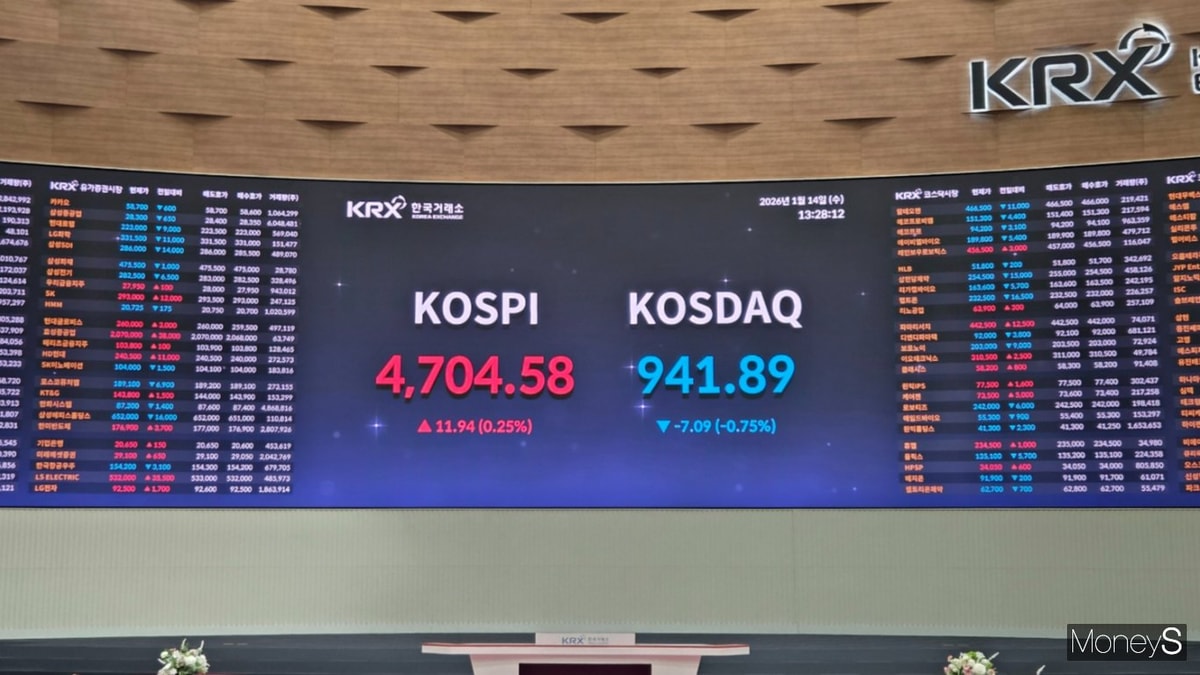 이날 한국거래소에 따르면 오후 1시57분 기준 코스피는 전 거래일 대비 12.45포인트(0.27%) 오른 4705.09, 코스닥은 전 거래일보다 8.38포인트(0.88%) 내린 940.60을 오간다.