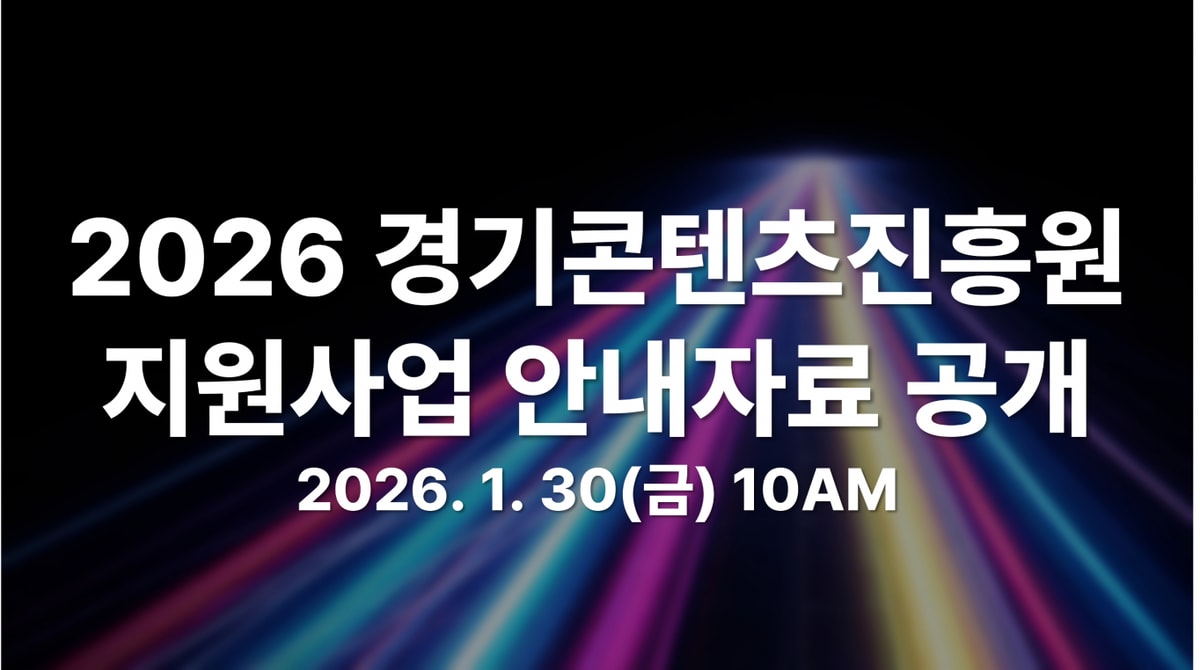 경기콘텐츠진흥원은 오는 30일 2026년 경기도 콘텐츠 산업 지원 사업을 공식 누리집 및 공식 유튜브 채널을 통해 공개한다고 15일 밝혔다.