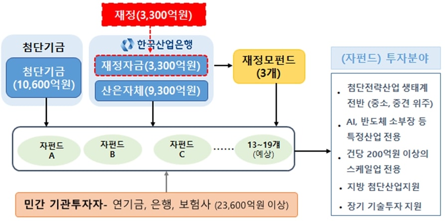 앞서 정부는 한국 경제의 미래를 좌우할 첨단전략산업에 대한 종합적인 금융지원을 위해 지난해 9월10일 '국민성장펀드 국민보고대회'를 통해 5년 동안 150조원의 국민성장펀드 조성방안을 발표했다.같은해 12월16일에는 '산업경쟁력강화관계장관회의'를 통해 2026년 중 30조원 이상의 자금을 첨단산업생태계 전반에 공급하는 방안을 내놨다.