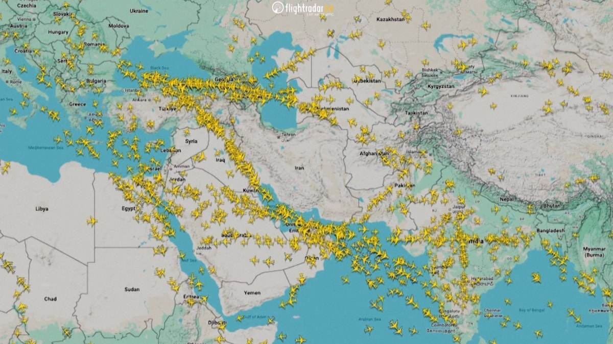 이란이 지난 14일(이하 현지시각) 밤부터 영공을 폐쇄하며 허가 받은 국제선을 제외한 항공편 이착륙을 금지했다. 사진은 지난 14일 일시적으로 폐쇄된 이란 항공 스크린샷. /사진=플라이트레이더24 캡처
