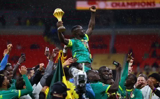 세네갈이 모로코를 꺾고 2025 아프리카네이션스컵(AFCON) 우승을 차지했다. 사진은 세네갈 선수들이 우승 트로피를 쥔 사디오 마네를 들어올리며 우승을 자축하는 모습. /사진=로이터