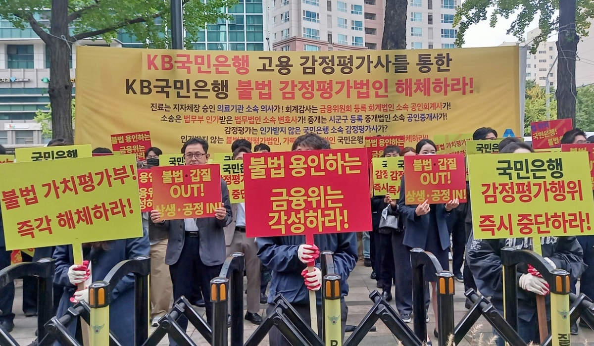 감정평가법 제5조2항은 금융기관이 대출과 자산 매입·매각 시 토지 등 감정평가를 외부 감정평가법인 등에 의뢰하도록 규정한다. 은행권은 비용 절감을 이유로 감정평가사를 직접 고용해 고액 부동산 등의 담보물을 평가하고 있다. 감정평가업계는 은행권이 감정평가사 직접 고용을 통해 자체 감정평가(은행권 자체 감정의 1.1%)하는 것 만이라도 즉각 중단해야 한다고 주장했다.