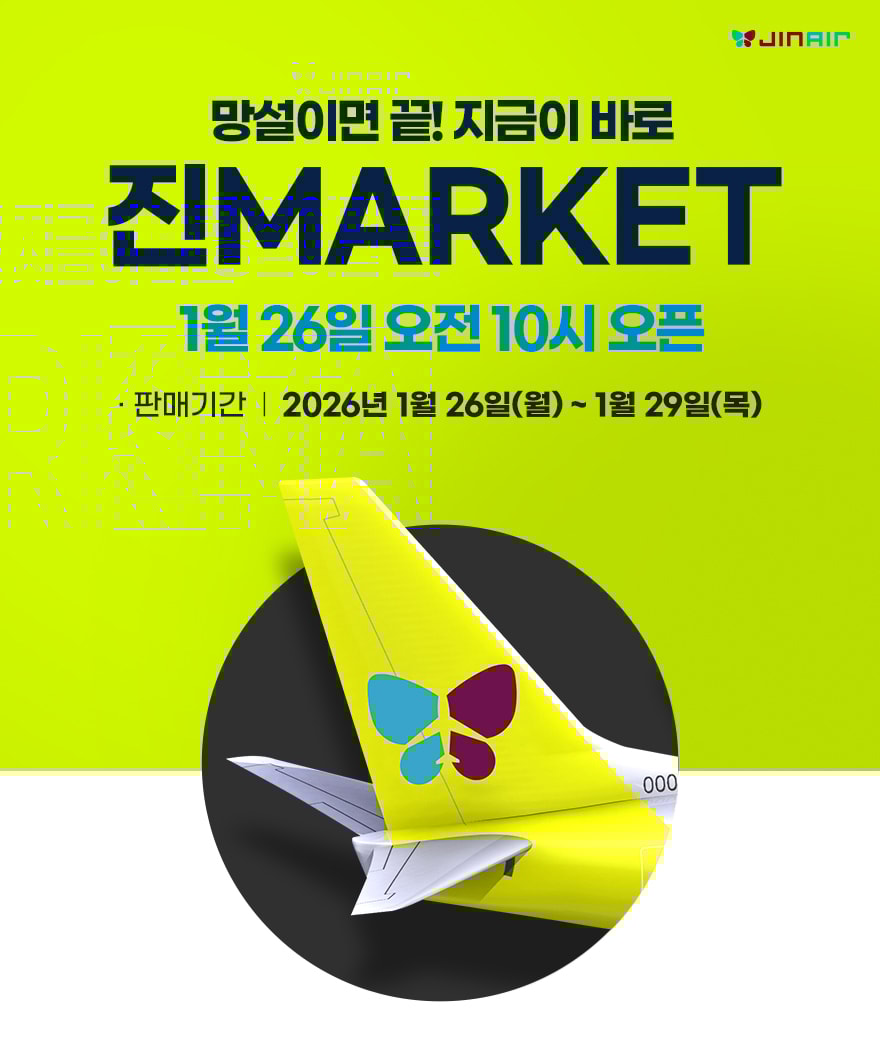 진에어가 연중 최대 특가 프로모션인 '2026년 상반기 진마켓(진MARKET)' 티저 페이지를 21일 오픈했다.
