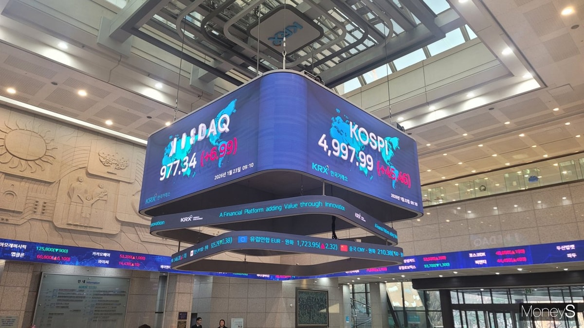 23일 한국거래소에 따르면 오전 9시16분 기준 코스피는 전 거래일 대비 43.64포인트(0.88%) 오른 4996.17 선에서 거래되다 이내 5000포인트를 넘어섰다.