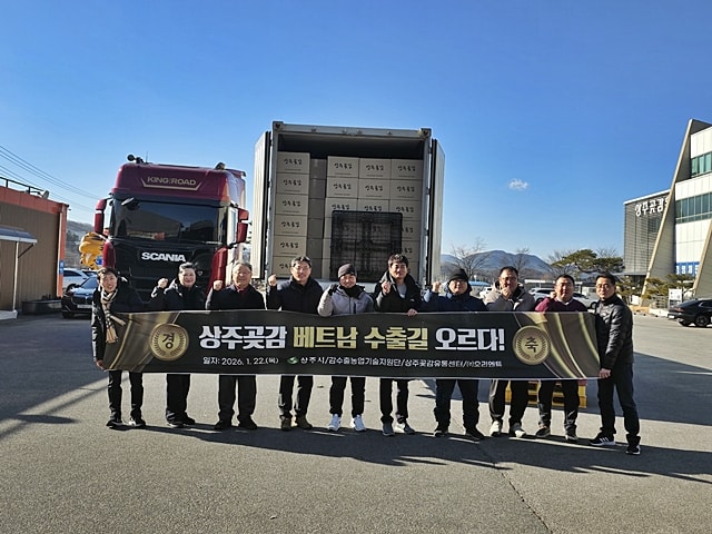 상주시에 따르면 상주곶감유통센터는 최근 회원 농가와 수출업체 주식회사 오리엔트, 감수출농업기술지원단, 상주시 관계자 등이 참석한 가운데 상주곶감의 베트남 수출을 진행했다. 이번 수출은 2026년 새해 들어 처음 이뤄진 해외 수출이다.