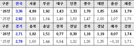 2026년 표준시 공시지가 시도별 평균 변동률 현황(단위:%). /자료제공=국토교통부
