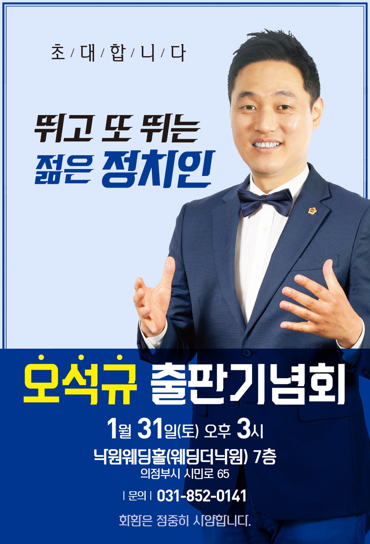 출판기념회는 이달 31일 오후 3시 낙원웨딩홀(웨딩더낙원)에서 열린다. 오 의원은 조만간 6.3 지방선거 의정부시장 출마를 공식화 할 계획이다.