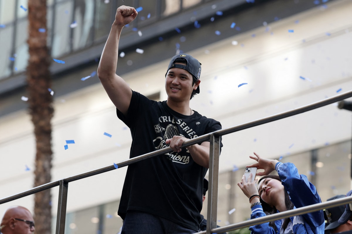 오타니 쇼헤이(LA 다저스)가 2026시즌 선수 파워랭킹 1위를 2년 연속 차지했다. 사진은 지난해 11월3일 미국 캘리포니아주 로스앤젤레스에서 열린 다저스 월드시리즈 우승 퍼레이드에 참석한 오타니가 관중에게 인사한 모습. /사진=로이터