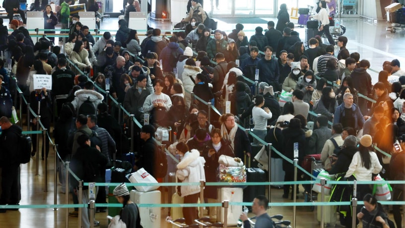 사진은 지난 13일 인천국제공항 제1여객터미널 출국장에 시민들이 출국수속을 하고 있는 모습./사진=뉴시스