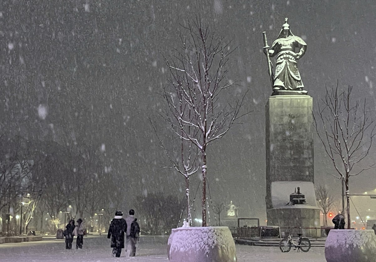 한파가 이어진 지난 23일 밤 서울 종로구 광화문 광장에 폭설이 내리고 있다. /사진=뉴스1