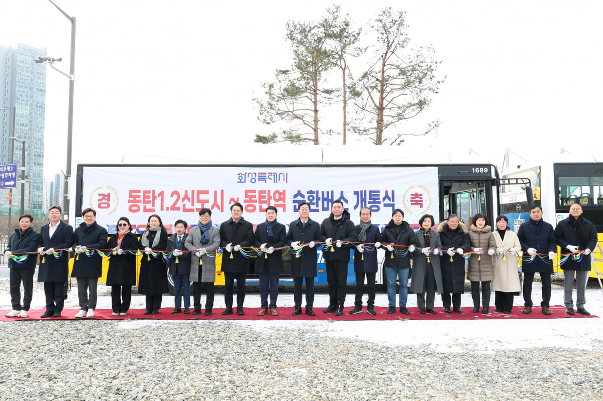 이날 동탄패밀리풀에서 열린 개통식에는 정명근 화성특례시장, 배정수 화성특례시의회 의장, 전용기 국회의원, 도·시의원, 시민 등 30여 명이 참석해 동탄역 순환버스 개통을 축하했다.