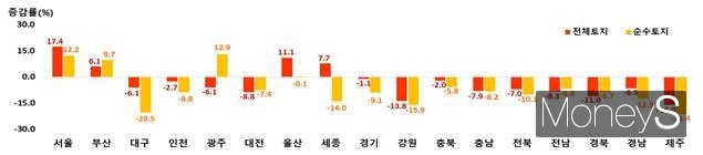 지난해 광주지역 순수 토지거래량 증가율이 전국 최고를 기록한 것으로 나타났다.
