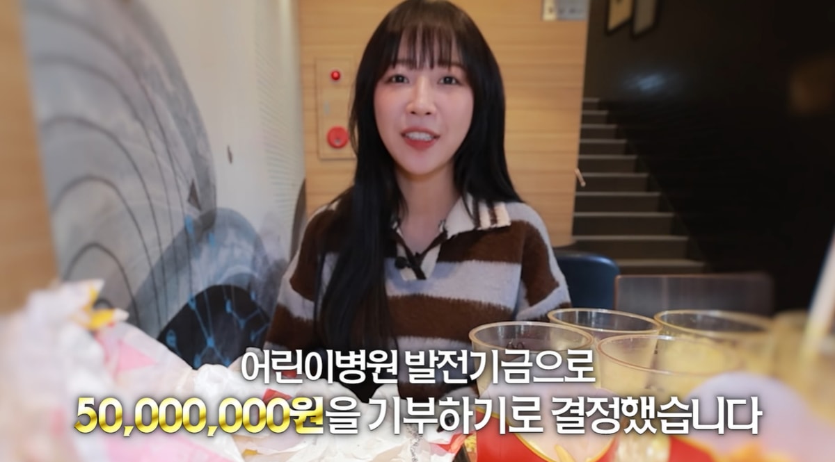 먹방 유튜버 쯔양이 투병 중인 10대 팬이 요청한 맥도날드 행운버거 먹방 요청에 응하며 기부에 동참했다. 사진은 쯔양이 행운버거 먹방 후 기부 소식을 전한 모습. /사진=쯔양 유튜브 영상 캡처