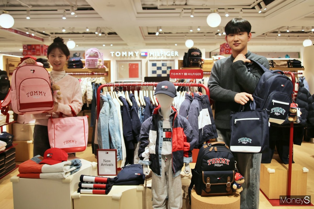 광주신세계 본관 6층 '타미힐피거 키즈' 매장에서 새학기를 맞아 직원들이 책가방과 보조가방을 선보이고 있다/사진=광주신세계 제공.