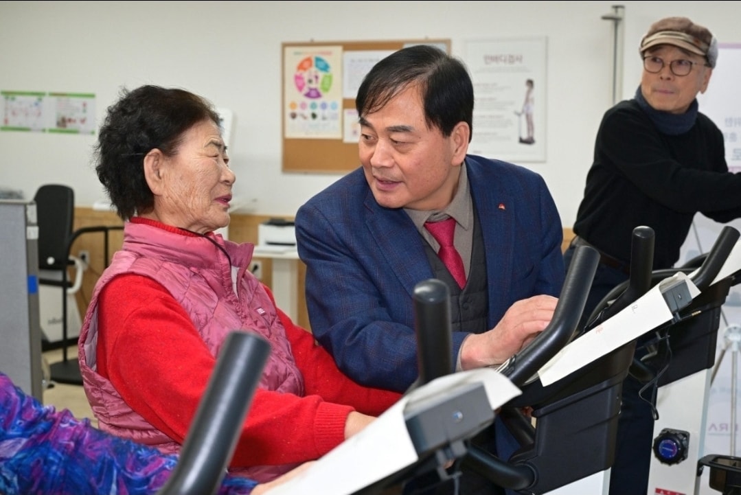 배 시장은 운동기구를 이용 중인 어르신 곁에 앉아 사용 과정에서의 불편함과 개선이 필요한 부분을 직접 듣는 등 눈높이 소통에 나섰다.