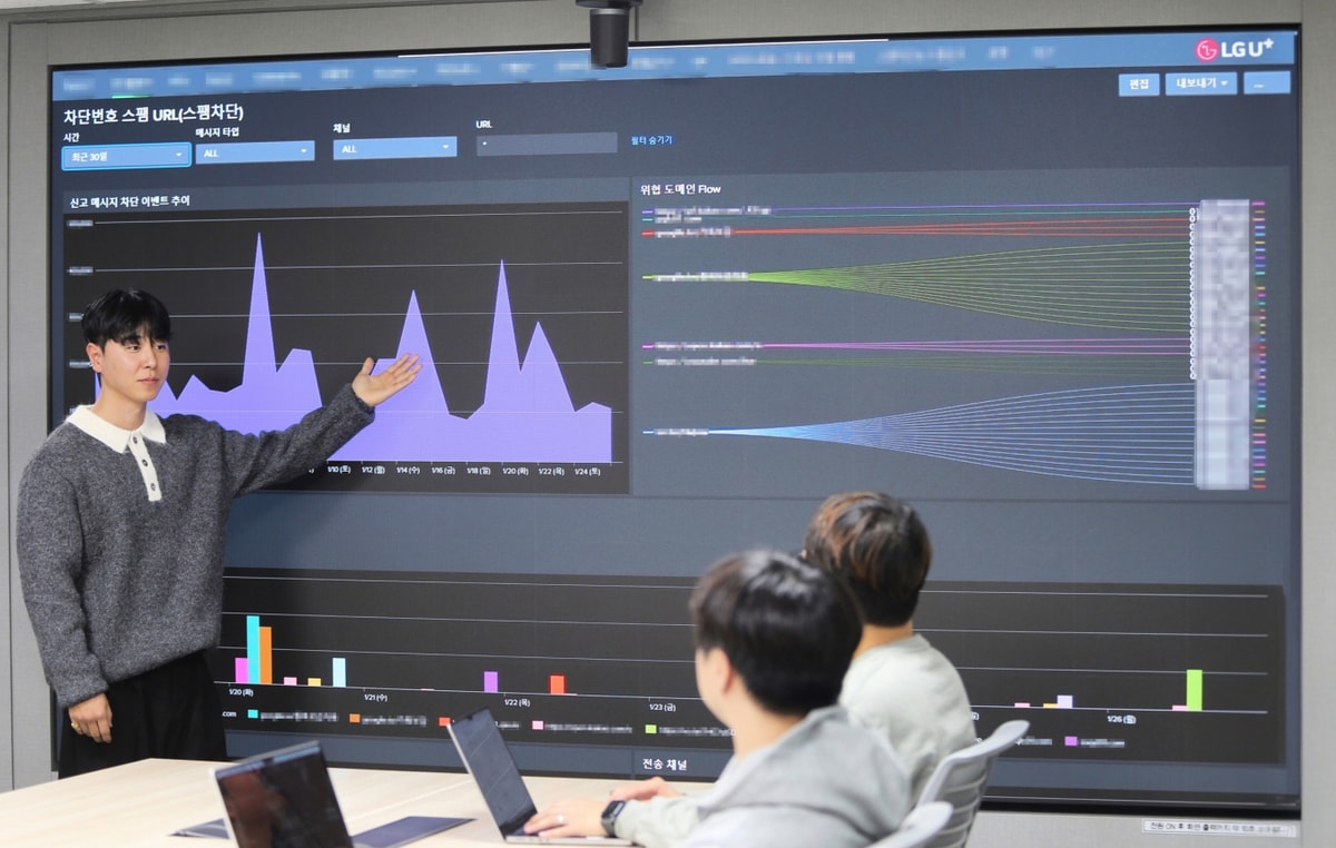 LG유플러스는 AI 기반 대내외 데이터 통합 분석·대응 체계인 '고객피해방지 분석시스템'을 통해 지난해부터 보이스피싱·스미싱 범죄 조직이 운영하는 악성 앱 제어 서버를 추적하고 있다.