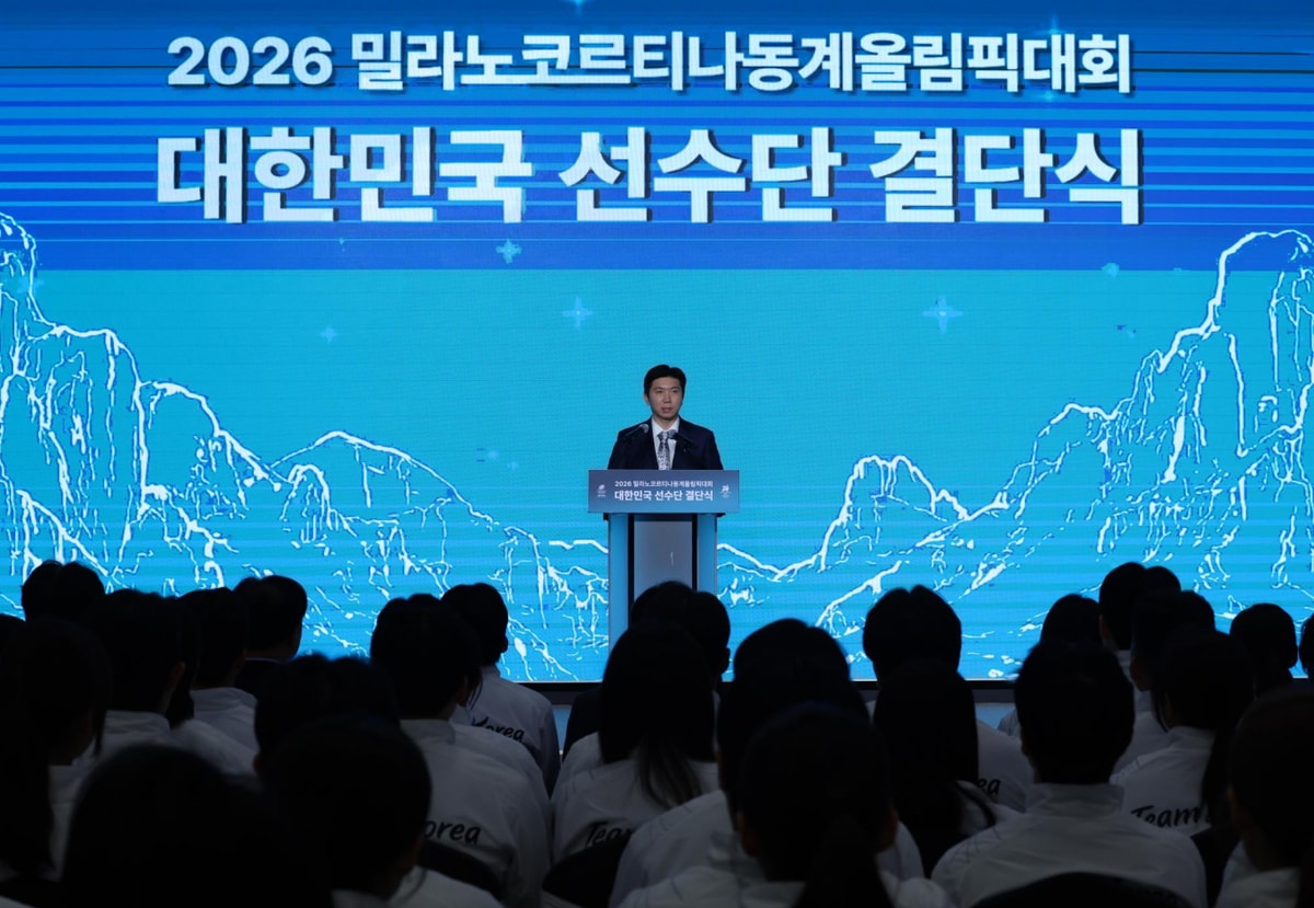 대한체육회가 최근 스노보드 종목 승부조작·국가대표 선발 공정성 논란에 대해 "무관용 원칙을 적용하겠다"고 강조했다. 사진은 유승민 대한체육회장이 지난 22일 서울시 송파구 올림픽파크텔에서 열린 2026 밀라노 동계올림픽 선수단 결단식에서 개식사 한 모습. /사진=뉴시스