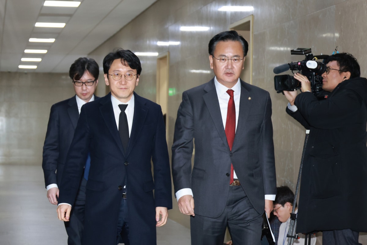 이에 따라 한병도 원내대표와 송언석 국민의힘 원내대표는 이날 오후 국회에서 별도 회동을 갖고 여당이 추진하는 국회법 개정안을 놓고 추가 논의를 이어갈 방침이다.