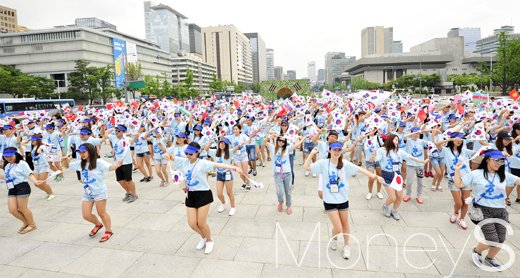 2016 예비대학생-대학생 재외동포 청소년 초청연수에 참가하고 있는 전세계 26개국 212명의 재외동포생들이 1일 서울 광화문 북측 광장에서 평화와 통일을 기원하며 '아리랑 퍼포먼스' 플래시몹을 진행했다.