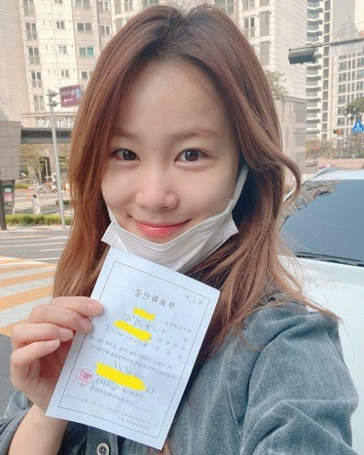 | 개그우먼 김지민이 15일 투표확인증과 함께 찍은 사진을 SNS에 게재했다. /사진=인스타그램 캡처 |