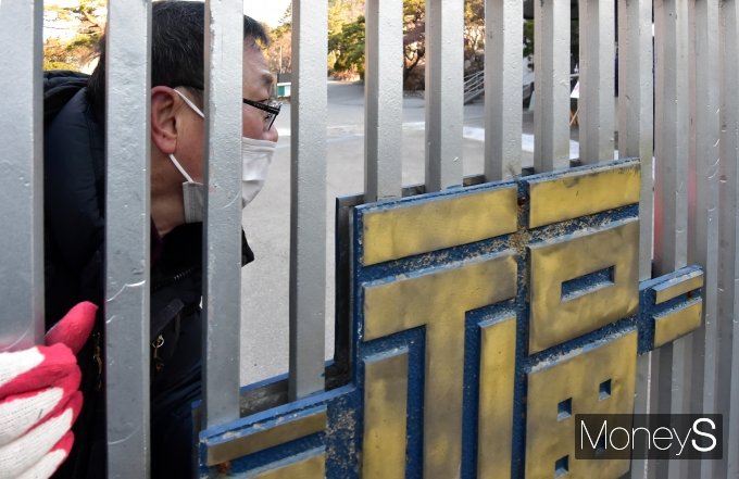 겨울철 실내활동 모임이 늘어나는 연말 연시를 맞아 코로나19 3차 확산이 전국적 증가속에 있는 가운데 2021학년도 대학수학능력시험 당일인 3일 서울 종로구 경복고등학교에 마련된 시험장에서 입실시간이 종료되자 철문이 닫히고 있다.