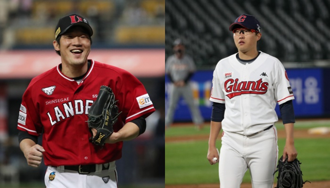 SSG랜더스와 롯데 자이언츠가 19일부터 주말 3연전을 부산 사직야구장에서 치른다. 사진은 19일 선발 투수로 예고된 SSG 박종훈(왼쪽)과 롯데 박세웅. /사진=뉴스1
